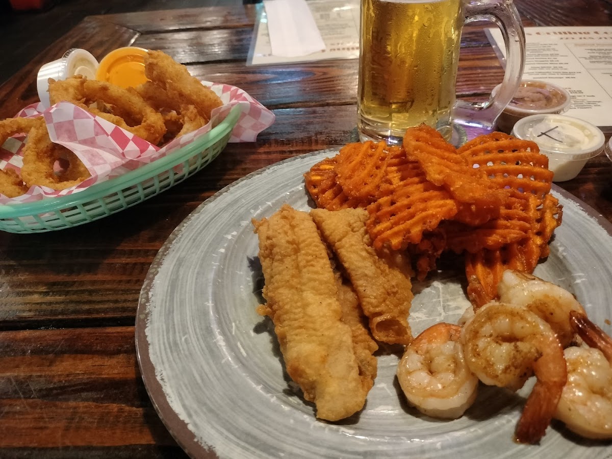 Catfish and Shrimp Combo with Sweet Potato Fries and Onion Rings